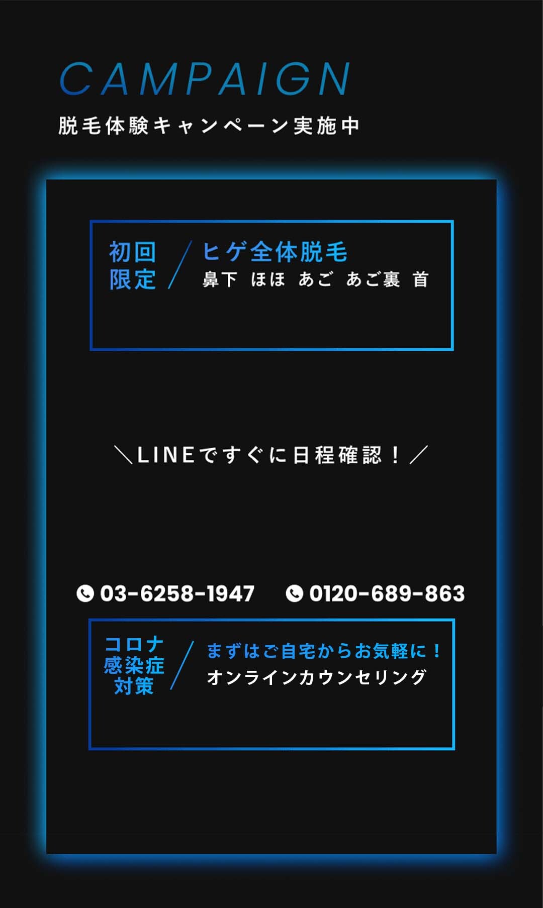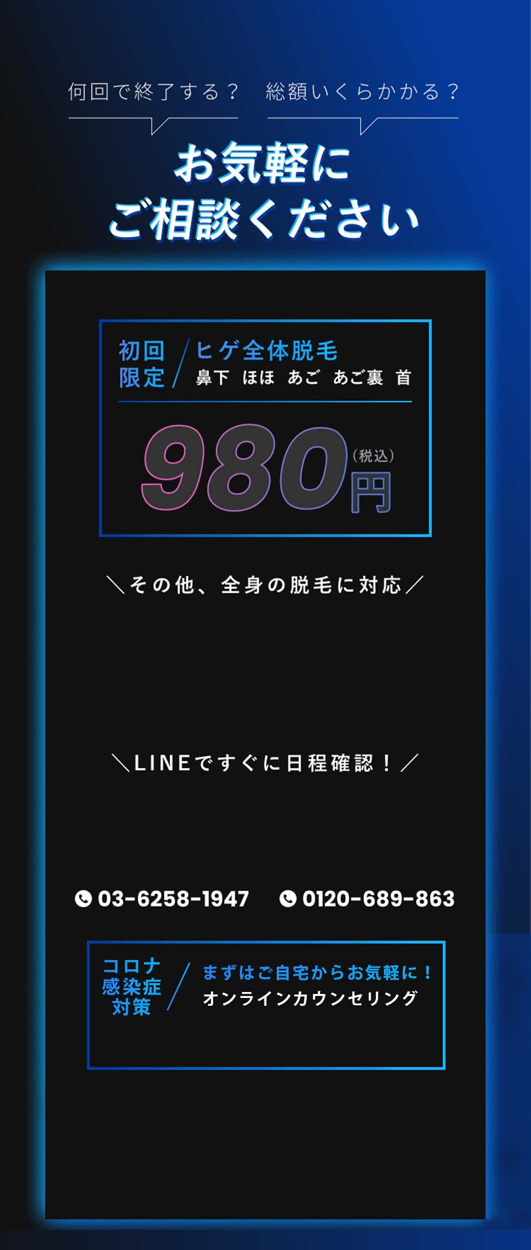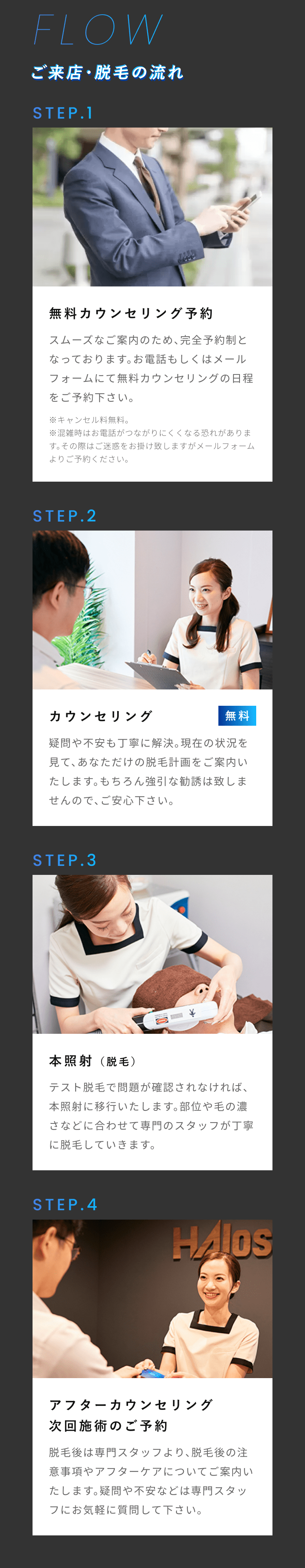 脱毛体験お申し込みフォーム 希望店舗選択必須 新宿店 名古屋本店 お名前必須 氏名 ふりがな 年齢必須 歳 メールアドレス必須 お電話番号必須 ご連絡の取りやすい番号をご入力ください。ハイフン「-」は不要です。 体験内容必須 オンラインカウンセリング 全顔ヒゲ脱毛 ヒゲ脱毛+VIO ヒゲ脱毛+足脱毛 第一予約希望日必須 予約時間10:00〜11:0011:00〜12:0012:00〜13:0013:00〜14:0014:00〜15:0015:00〜16:0016:00〜17:0017:00〜18:0018:00〜19:0019:00〜20:0020:00〜21:00 第二予約希望日 予約時間10:00〜11:0011:00〜12:0012:00〜13:0013:00〜14:0014:00〜15:0015:00〜16:0016:00〜17:0017:00〜18:0018:00〜19:0019:00〜20:0020:00〜21:00 第三予約希望日 予約時間10:00〜11:0011:00〜12:0012:00〜13:0013:00〜14:0014:00〜15:0015:00〜16:0016:00〜17:0017:00〜18:0018:00〜19:0019:00〜20:0020:00〜21:00 ご質問・ご要望等 個人情報保護方針 当サロンは、プライバシーを尊重すべき重要なものとして認識しており、ホームページご利用の際にご提供いただくお客さまの個人情報を慎重に取り扱い、プライバシーの保護に努めております。個人情報の取り扱いに関しては、個人情報保護方針に従っております。 1.利用目的について ・ホームページからのご予約の受付、お問い合わせに対する対応のため。・事務管理を適切に行うため。・個人情報の開示、内容の訂正、追加又は削除、利用の停止、消去及び第三者への提供の停止等の意思確認、また、その申請に対応するために利用します。※以上の目的以外で利用者さまの情報を利用する場合、利用者さまご本人に個別理由を説明し、同意を得た上で行うものといたします。ただし、緊急の場合、施術のため必要な場合等、当サロンが必要だと判断した場合は利用を優先し、後ほど説明させていただきます。 2.個人情報の第三者提供について 当サロンは、利用者さまよりお預かりした個人情報を適切に管理し、次のいずれかに該当する場合を除き、個人情報を第三者に開示、提供いたしません。 ・法令に基づく場合。 ・人の生命、身体又は財産の保護のために必要がある場合であって、本人の同意を得ることが困難な場合。 ・公衆衛生の向上又は児童の健全な育成の推進のために特に必要がある場合であって、本人の同意を得ることが困難である場合。 ・国の機関若しくは地方公共団体又はその委託を受けた者が法令の定める事務を遂行するに対して協力する必要がある場合であって、本人の同意を得ることによって当該事務の遂行に支障を及ぼすおそれがある場合。 3.セキュリティについて 個人情報保護のためのセキュリティとしてSSL(Secure Sockets Layer)というデータ暗号化技術を使用しております。 4.容易に認識出来ない方法による取得について CookieやWeb beacon等、個人情報を収集されていると容易に認識できない方法によって、利用者さまの個人情報を収集することはありません。 5.個人情報の委託について 検体、検査等のため他機関へ業務委託する場合などは、当該機関から機密保持に関する誓約書を取得し、個人情報の保護に努めます。 6.個人情報の開示、訂正、追加、削除、利用、提供の拒否について 当サロンへご提出いただいた個人情報については、開示、訂正、追加、提供の拒否等の要求が出来ます。詳しくは下記個人情報管理係までご連絡ください。 メンズ脱毛専門店 HAloss〒450-0002愛知県名古屋市中村区名駅3丁目13-31 名駅モリシタビル 9F TEL:0120-689-863 個人情報保護方針・プライバシーポリシーに同意します。